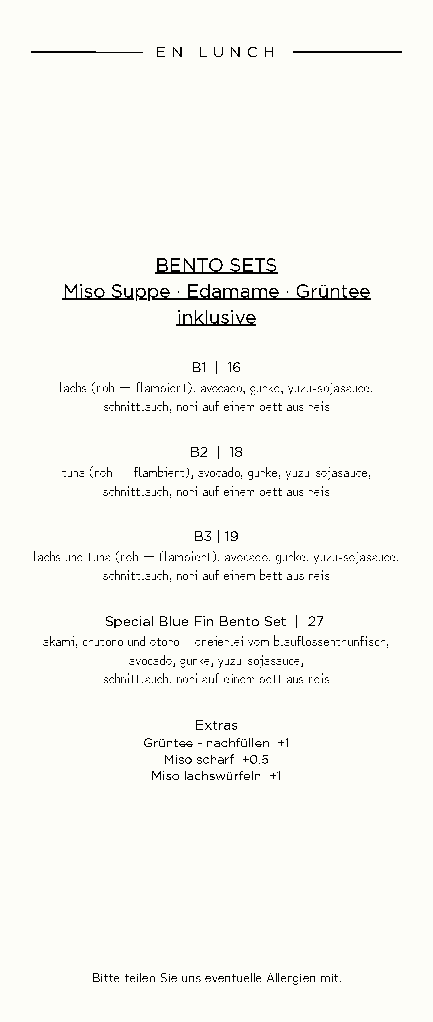 Bitte beachten Sie, dass unsere Küche bereits 30 Minuten vor Schließzeit schließt.